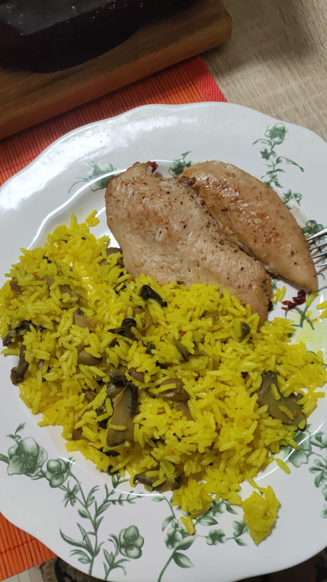 orez cu ciuperci si piept de pui