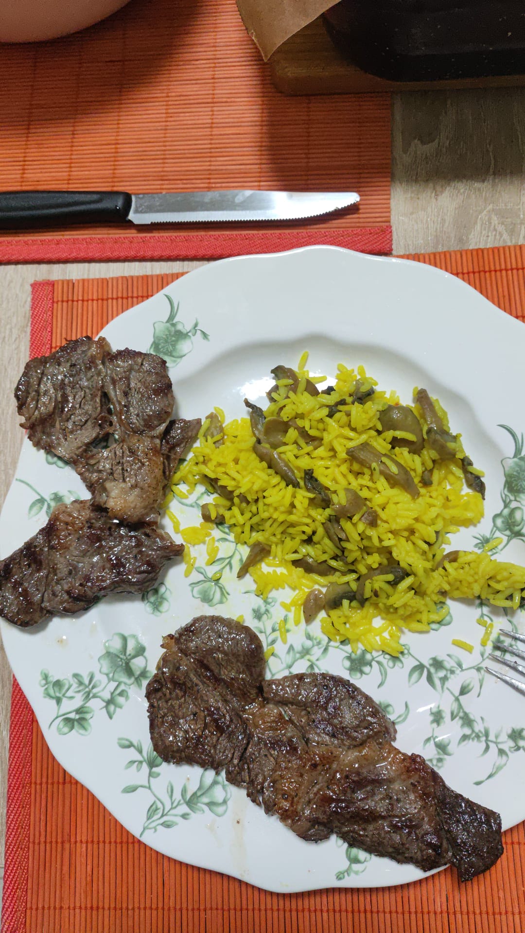 orez cu ciuperci si carne de vita